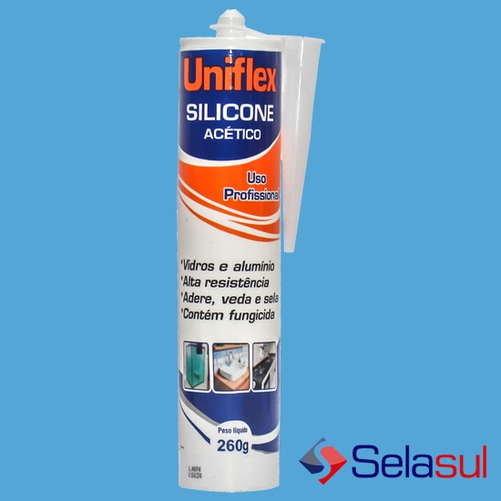 Adesivo de silicone de cura acética com fungicida para uso profissional, que cura em contato com a temperatura e umidade ambiente, formando uma borracha flexível, resistente e aderente.